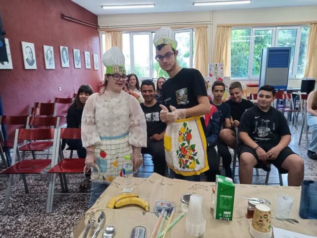Στο πλαίσιο του προγράμματος, μαθητές και μαθήτριες του σχολείου μας, συνοδευόμενοι από εκπαιδευτικούς, επισκέφθηκαν το 2ο Γυμνάσιο Τυρνάβου, συμμετέχοντας σε κοινή βιωματική δράση παρασκευάζοντας υγιεινές συνταγές με τοπικά προϊόντα. Το σχολείο μας παρουσίασε ένα πιάτο βασισμένο σε υπερτροφές: «Bελουτέ Σούπα Γλυκοπατάτας με Κρόκο Κοζάνης», ενώ η δράση ολοκληρώθηκε με την ανάδειξη του διατροφικού πιάτου «Healthy Eating Plate» του Harvard University, προάγοντας τη σημασία της ισορροπημένης διατροφής.
