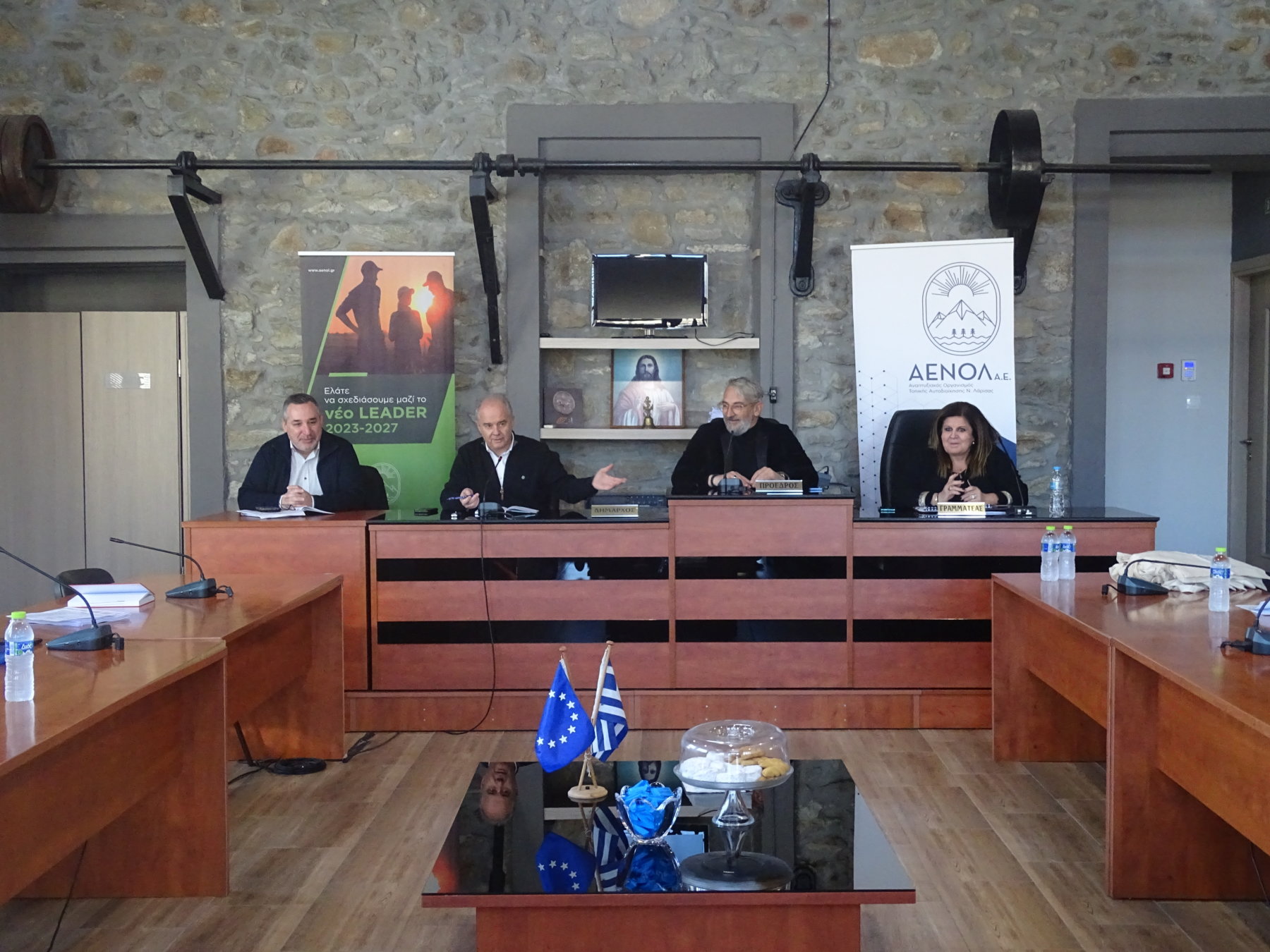 Ο Δήμαρχος Τεμπών κ. Μανώλης Γεώργιος, καλωσόρισε τον Πρόεδρο και τα στελέχη του Αναπτυξιακού Οργανισμού Τοπικής Αυτοδιοίκηση Νομού Λάρισας ΑΕΝΟΛ ΑΕ , επισημαίνοντας την αναγκαιότητα ενίσχυσης των τοπικών κοινωνιών μέσου του προγράμματος Leader και την στήριξη που είχε τόσο ο Δήμος Τεμπών όσο και οι επενδυτές του Δήμου από την ΑΕΝΟΛ Α.Ε. σε προηγούμενες προγραμματικές περιόδους.