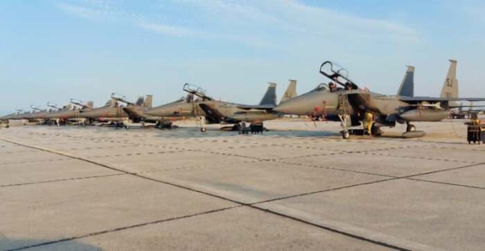 Εντυπωσιακές εικόνες έδωσε στη δημοσιότητα το Γενικό Επιτελείο Εθνικής Άμυνας, από την προσγείωση στο αεροδρόμιο της 110 Πτέρυγας Μάχης στη Λάρισα, αμερικανκών μαχητικών F–15.