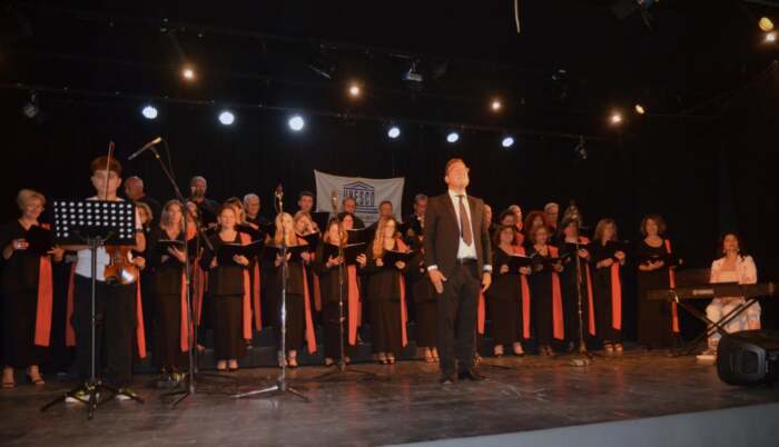 Η μικτή χορωδία “musicArte” Ελασσόνας εντυπωσίασε με την απόδοσή της το κοινό το οποίο ανταπέδωσε με επευφημίες και παρατεταμένα χειροκροτήματα παρουσιάζοντας σε τετράφωνη επεξεργασία a capella και συνοδεία πιάνου και βιολιού ένα ευχάριστο πρόγραμμα με συνθέσεις ξένων και Ελλήνων δημιουργών. Συνόδευσαν στο πιάνο η μουσικοπαιδαγωγός – καθηγήτρια πιάνου κ. Έφη Φαρμάκη και στο βιολί ο μαθητής του Μουσικού Σχολείου Λάρισας Γιάννης Μάτης. Τη διεύθυνση και διδασκαλία της χορωδίας είχε ο μαέστρος Κωνσταντίνος Μάτης.