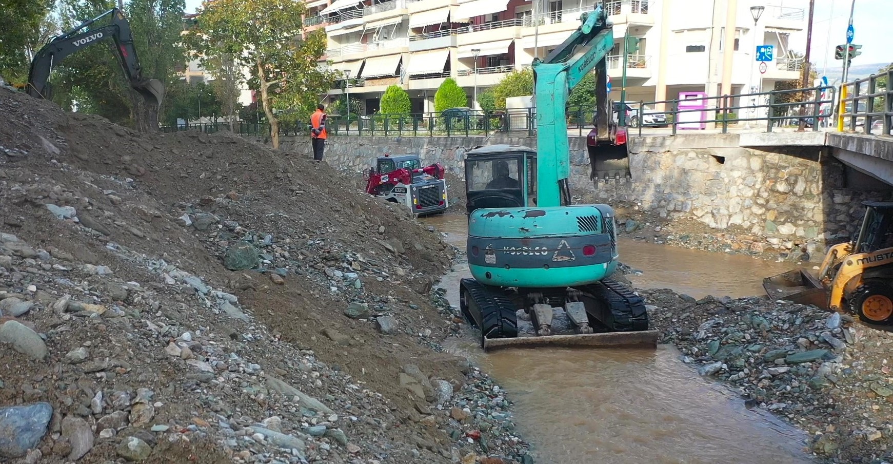 Ταυτόχρονα 43 μηχανήματα επιχειρούν για τον καθαρισμό του Κραυσίδωνα, στην πόλη του Βόλου. Ανάλογες παρεμβάσεις πραγματοποιούνται και στους νομούς Καρδίτσας και Τρικάλων.