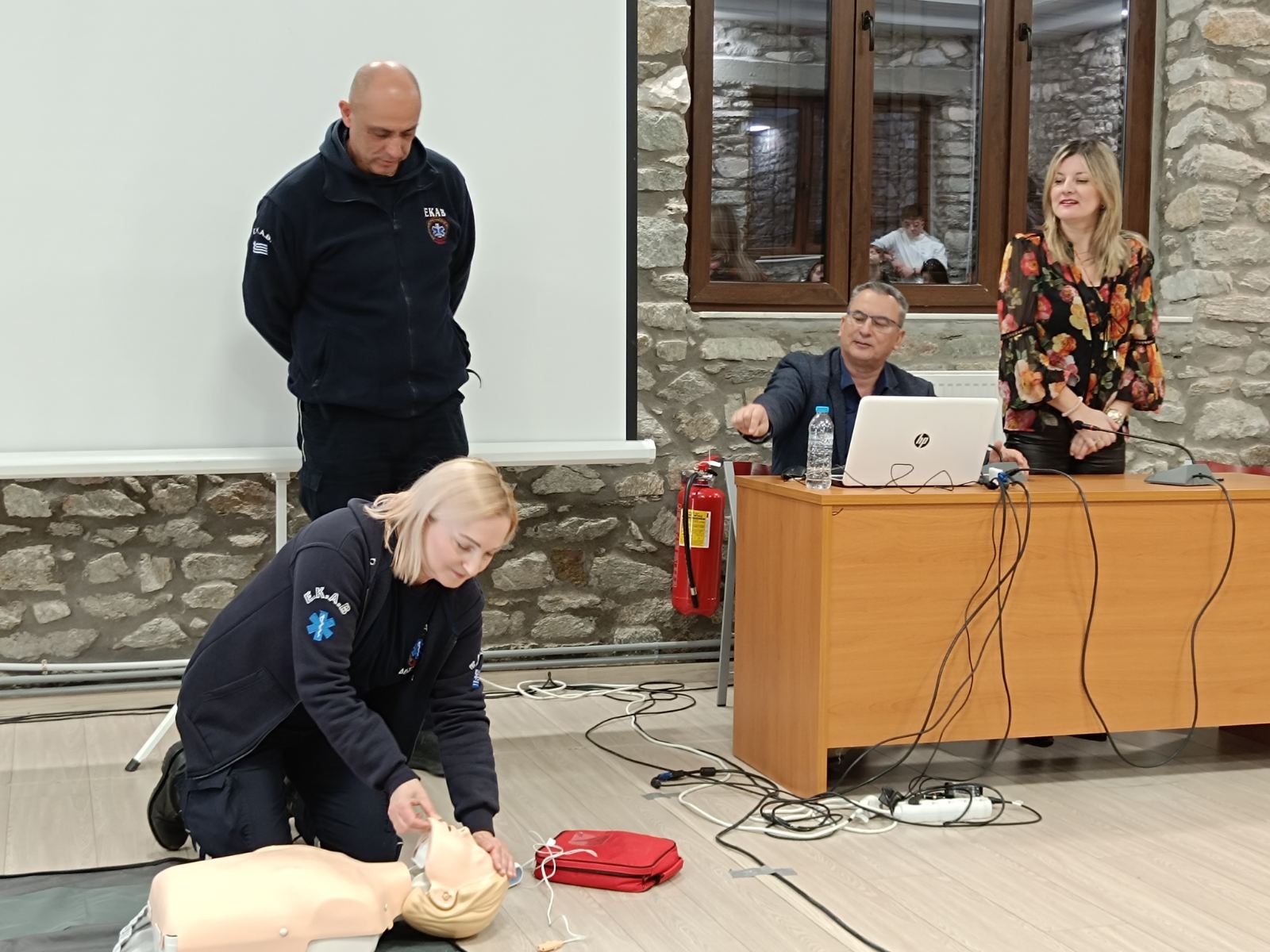 Η εκδήλωση συγκέντρωσε πλήθος μαθητών, εκπαιδευτικών και εκπροσώπων φορέων, επιβεβαιώνοντας το έντονο ενδιαφέρον για την πρόληψη και την ενίσχυση της ασφάλειας στις σχολικές μονάδες. Οι μαθητές και όλοι οι παρευρισκόμενοι παρακολούθησαν με μεγάλο ενδιαφέρον την αναλυτική παρουσίαση και την πρακτική επίδειξη παροχής πρώτων βοηθειών με τη χρήση αυτόματου εξωτερικού απινιδωτή, που πραγματοποιήθηκε από Εκπαιδευτική Ομάδα Διασωστών του ΕΚΑΒ με επικεφαλής τον Πρόεδρο του Σωματείου Εργαζομένων ΕΚΑΒ Θεσσαλίας, κ. Γιάννη Γούλα.