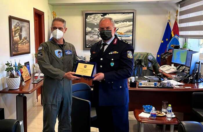 Από την πλευρά του, ο Αρχηγός Τακτικής Αεροπορίας προσέφερε στον κ. Γενικό αναμνηστική πλακέτα και καπέλο με τα διακριτικά τους.