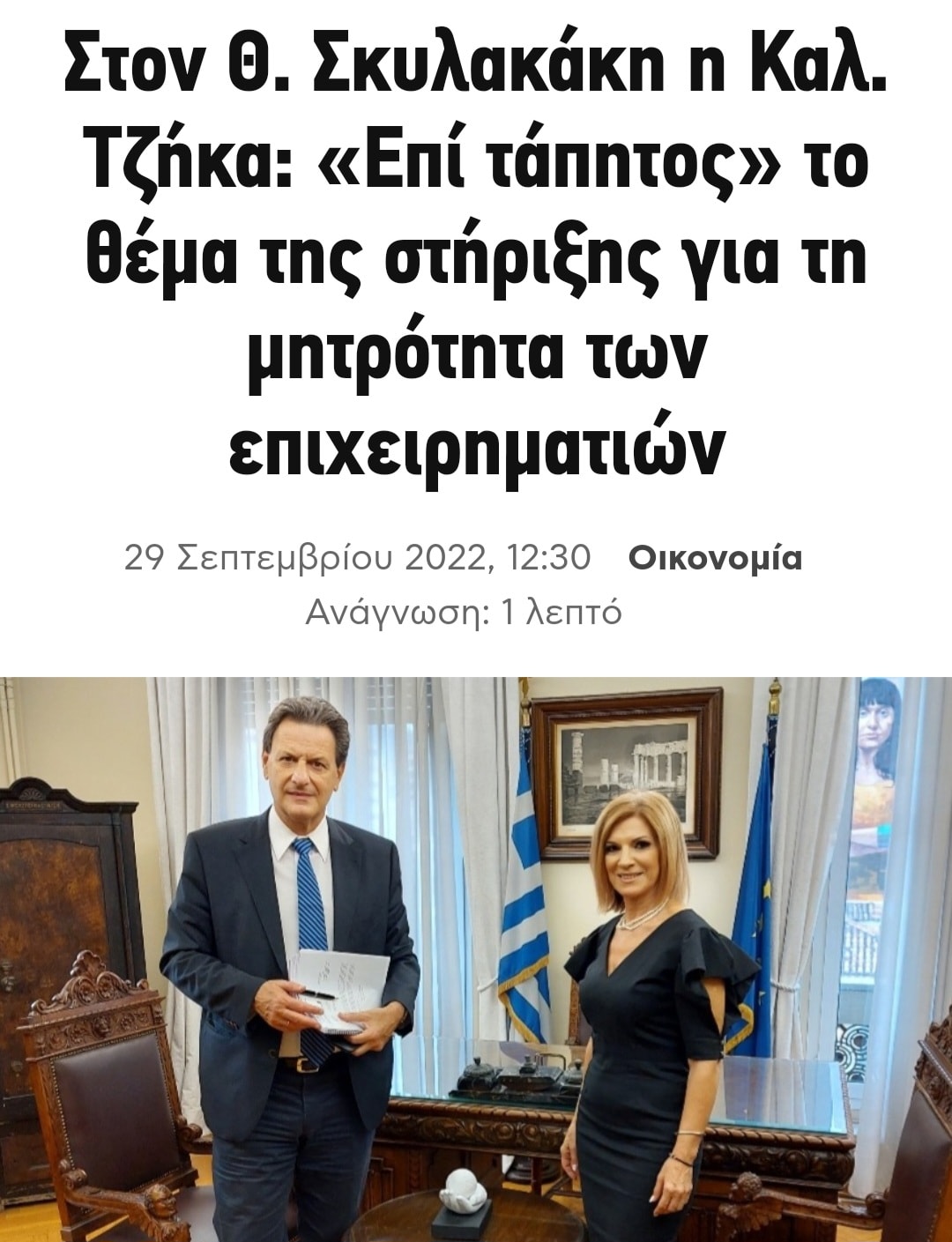 Ήταν Μάρτιος του 2021 όταν έγινε η πρώτη συζήτηση στο Επιμελητήριο Λάρισας με τον τότε Υφυπουργό πάρα τω Πρωθυπουργώ και νυν Υφυπουργό Κλιματικής Κρίσης και Πολιτικής Προστασίας κ. Χ. Τριαντόπουλο, ο οποίος δέχθηκε με πραγματικό ενδιαφέρον την πρόταση της Γ. Γραμματέως κας Τζήκα για την στήριξη της μητρότητας των επιχειρηματιών κατά τις περιόδους κύησης, λοχείας και ανατροφής τέκνων Ετσι και φυσικά με την αμέριστη στήριξη και συμπαράσταση του Προέδρου κ. Σωτήρη Γιαννακόπουλου ξεκίνησε ένας αγώνας!!!