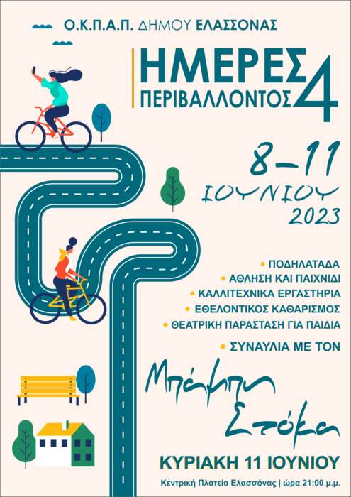 Με την καθιερωμένη ποδηλατάδα για μικρούς και μεγάλους ανοίγουν φέτος οι «Ημέρες Περιβάλλοντος 4» που διοργανώνει για 4η χρονιά ο Οργανισμός Κοινωνικής Προστασίας, Αλληλεγγύης και Παιδείας του Δήμου Ελασσόνας από την Πέμπτη 8 Ιουνίου έως και την Κυριακή 11 Ιουνίου 2023.