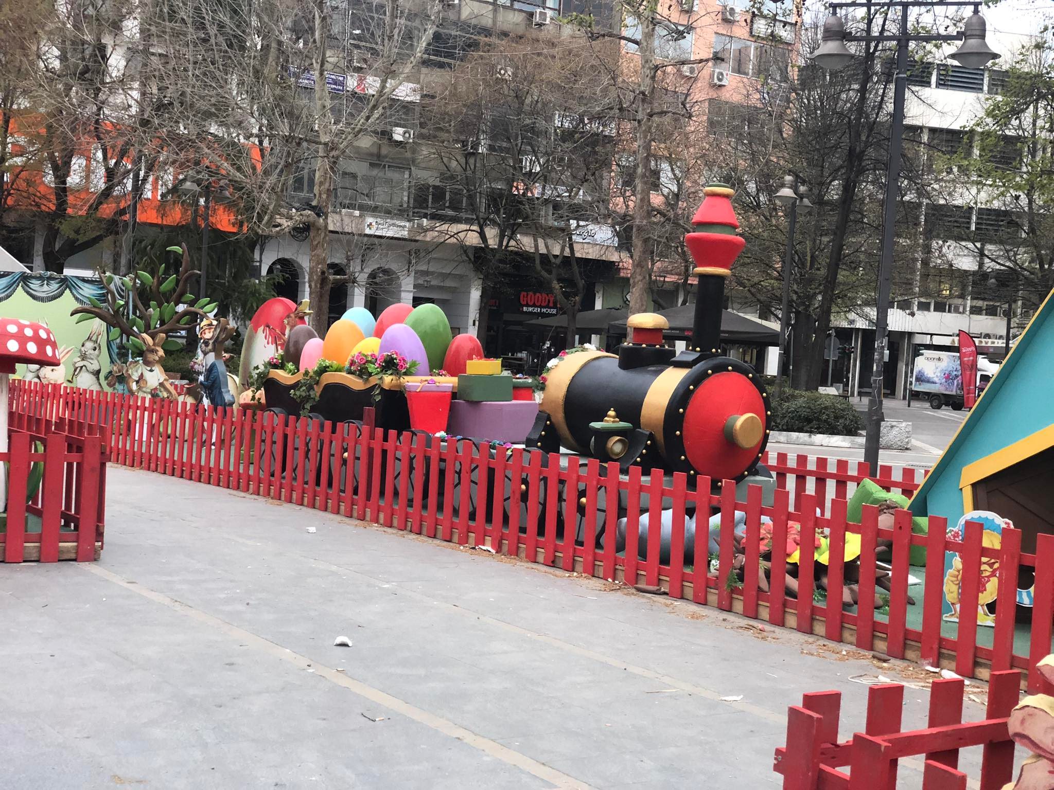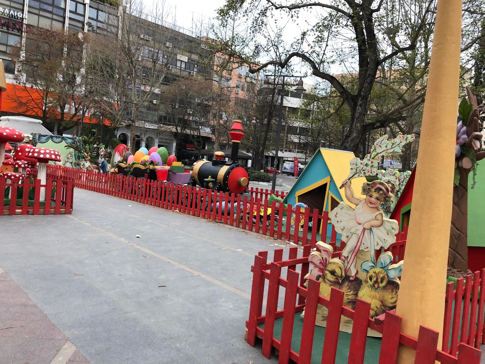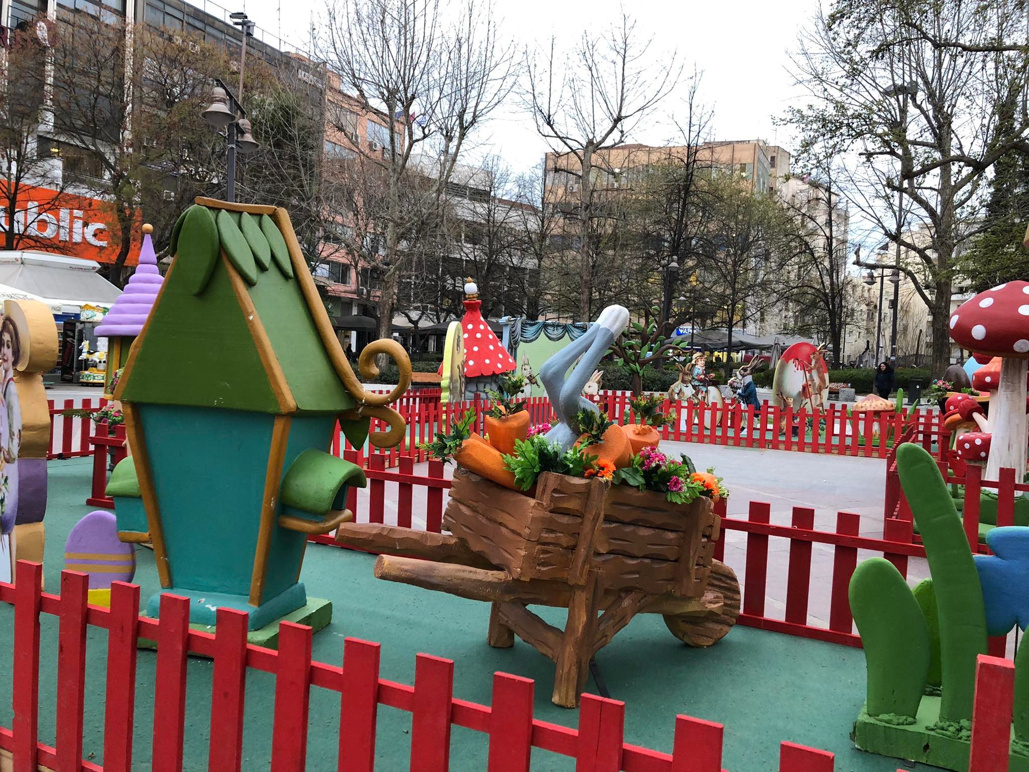 Ένα μικρό πασχαλινό χωριό, με εποχικές κατασκευές και σκηνικά, στήνεται στην Κεντρική πλατεία της Λάρισας για να προετοιμάσει το κλίμα ενόψει του Πάσχα.