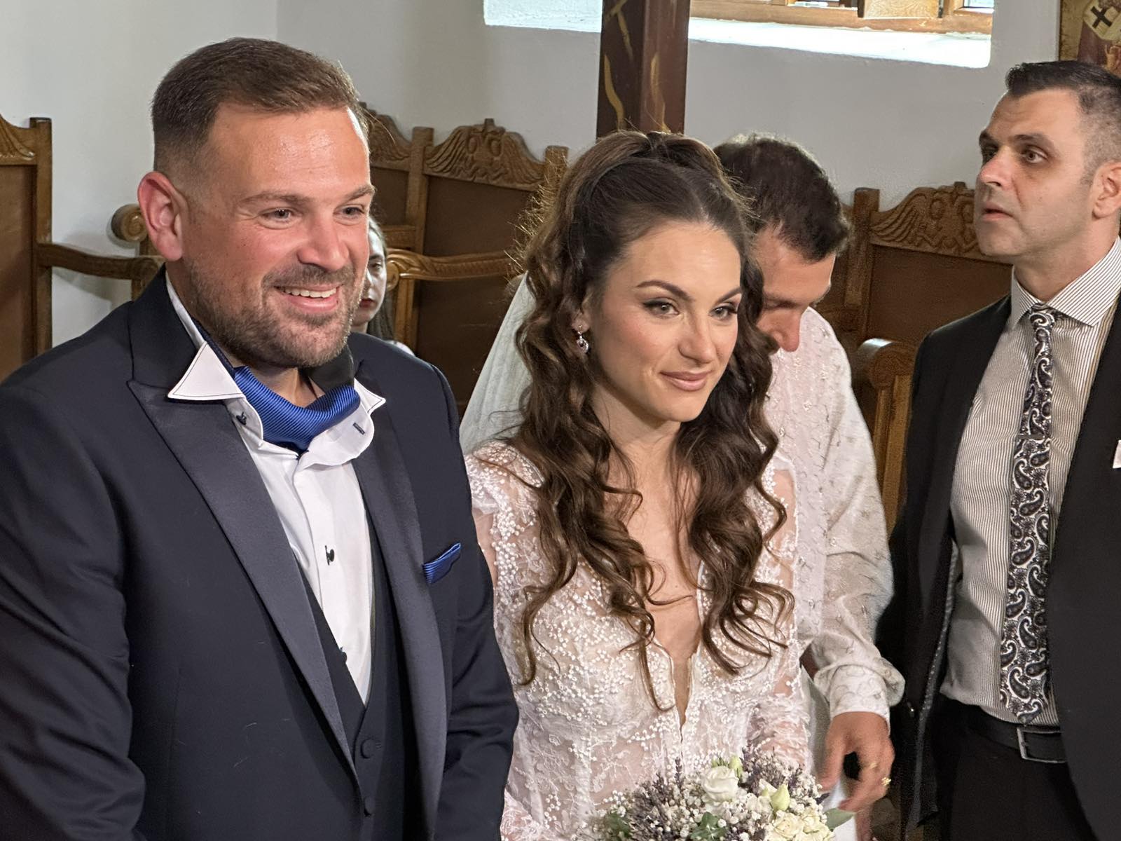 Κουμπάροι του ζευγαριού ήταν ο Παναγιώτης Ζαχαράκης και η Νανσυ Αστερίου. Ακολούθησε δεξίωση στο «Πίνδος resort».