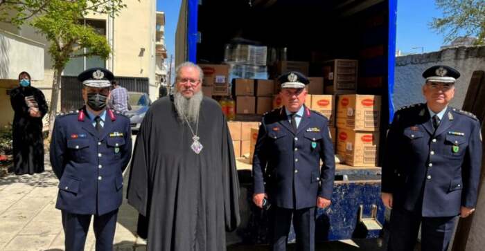 Ενόψει του φετινού εορτασμού του Πάσχα, από το προσωπικό της Γενικής Περιφερειακής Αστυνομικής Διεύθυνσης (ΓΕ.Π.Α.Δ.) Θεσσαλίας, συνεπικουρούμενο από φίλους του Σώματος της Ελληνικής Αστυνομίας, συγκεντρώθηκαν μεγάλες ποσότητες τροφίμων, τα οποία παραδόθηκαν στην Ιερά Μητρόπολη Λαρίσης και Τυρνάβου για την ενίσχυση των συσσιτίων της «Ο Επιούσιος». Επαΐων