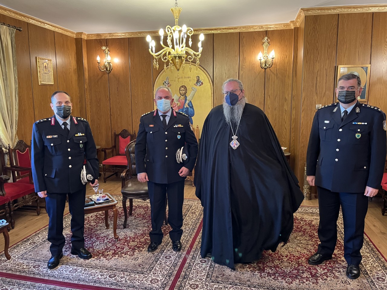 Στο πλαίσιο αυτό, σήμερα (14-04-2022) το πρωί, ο Γενικός Περιφερειακός Αστυνομικός Διευθυντής Θεσσαλίας, Υποστράτηγος Αστέριος Μαντζιώκας, συνοδευόμενος από τον Ταξίαρχο Βασίλειο Καραΐσκο, Βοηθό ΓΕ.Π.Α.Δ. Θεσσαλίας, καθώς και τον Διευθυντή της Διεύθυνσης Αστυνομίας Λάρισας, Αστυνομικό Διευθυντή Αγάπιο Χαρακόπουλο, συναντήθηκαν με τον Σεβασμιώτατο Μητροπολίτη Λαρίσης και Τυρνάβου, κ.κ. Ιερώνυμο και προσέφεραν τα συγκεντρωθέντα είδη.