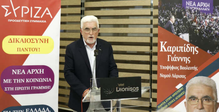 Στην κατάμεστη αίθουσα του “Dionisos Hotel” στη πόλη της Λάρισας, πραγματοποιήθηκε την Τρίτη 9 Μαΐου, η ομιλία του υποψήφιου βουλευτή του ΣΥΡΙΖΑ-Προοδευτική Συμμαχία στο Νομό Λάρισας Γιάννη Καριπίδη. Ο Ελασσονίτης οφθαλμίατρος, που ήταν πρώτος επιλαχών στις εθνικές εκλογές του 2019 δίνει τον μεγάλο προεκλογικό αγώνα για την είσοδό του στη Βουλή με το ψηφοδέλτιο της δημοκρατικής και προοδευτικής παράταξης της Αριστεράς.