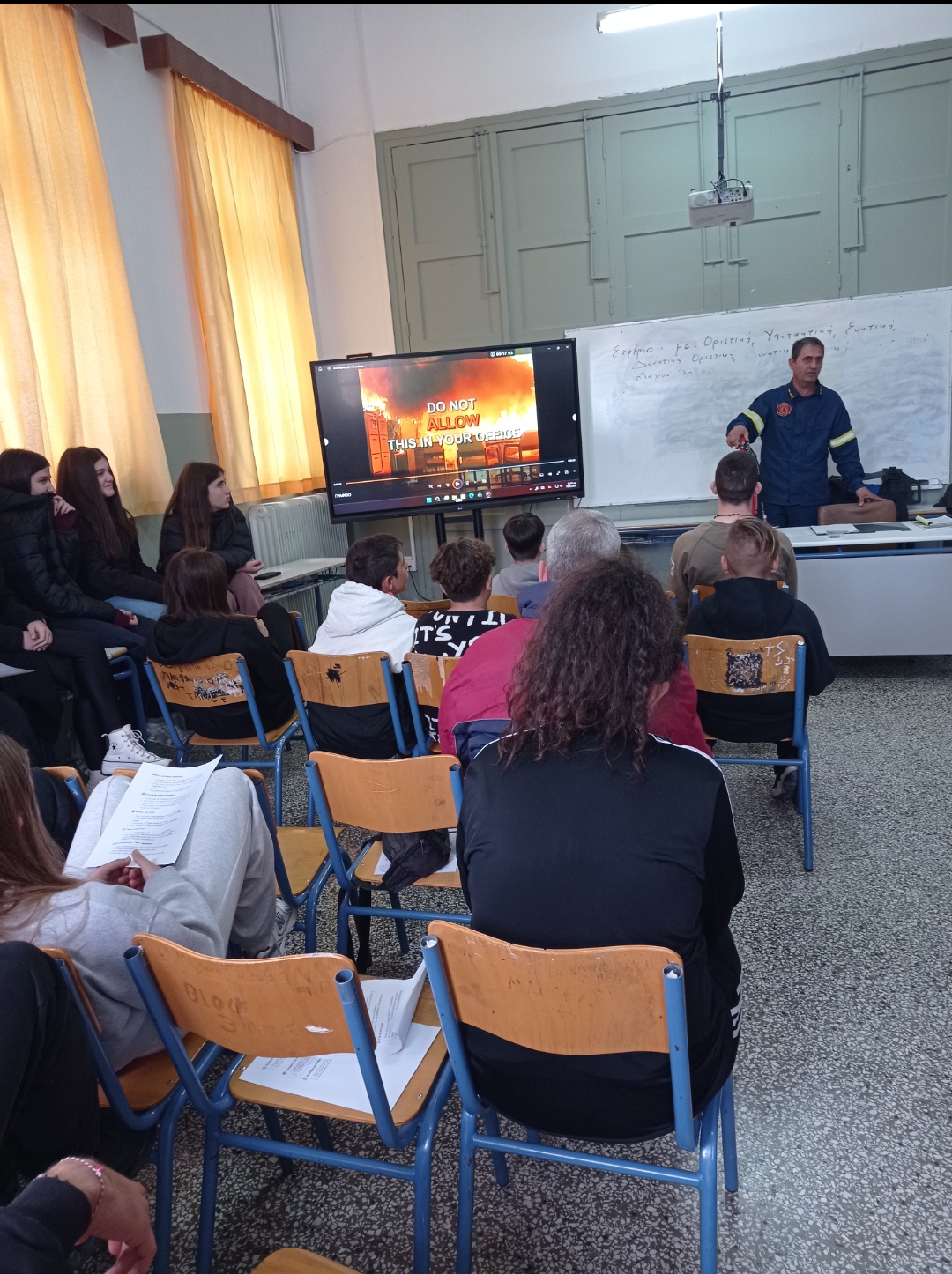 Κατά τη διάρκεια της παρουσίασης, εξειδικευμένα στελέχη της Πυροσβεστικής Υπηρεσίας ανέπτυξαν με σαφήνεια, υπευθυνότητα και ιδιαίτερα παραστατικό τρόπο βασικές οδηγίες πρόληψης πυρκαγιών, προσαρμοσμένες στην καθημερινότητα των μαθητών και των εκπαιδευτικών. Μέσα από κατανοητά παραδείγματα και πραγματικά περιστατικά, ανέδειξαν τους συνηθέστερους κινδύνους που μπορεί να οδηγήσουν σε εκδήλωση πυρκαγιάς, τόσο σε σχολικούς χώρους όσο και στο οικιακό περιβάλλον.