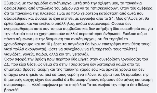 Αναρτήσεις κατοίκων το επισημαίνουν με αγανάκτηση για το γεγονός ότι η πλατεία τους με αυτόν τον τρόπο γυμνώνεται όλο και περισσότερο.