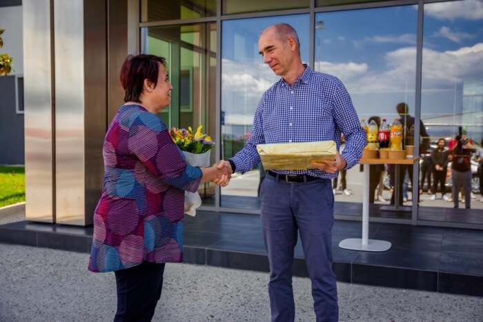 O Γενικός Διευθυντής της εταιρίας κος Δημήτρης Γκατσώνης εξήρε το έργο της κας Ζαβρίδου και της προσέφερε ένα υπέροχο μπουκέτο λουλούδια καθώς και ένα άλμπουμ φωτογραφιών με εικόνες από προσωπικές στιγμές αλλά και δράσεις της κας Ζαβρίδου στον αυτοκινητόδρομο.