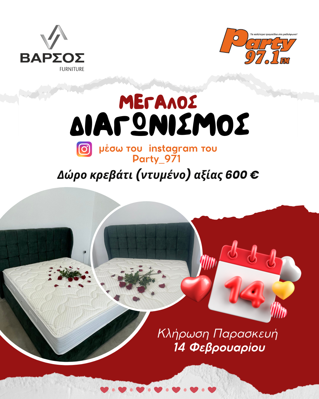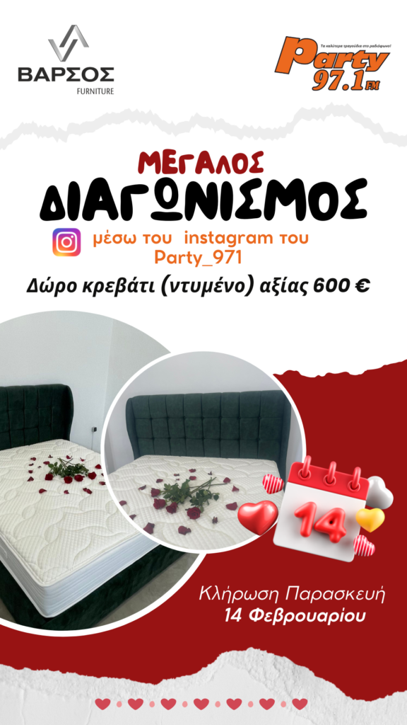 Μοναδικός διαγωνισμός μέσω instagram‼️από τον Party 97.1 και τα έπιπλα Βάρσος για τη γιορτή του Αγίου Βαλεντίνου.
