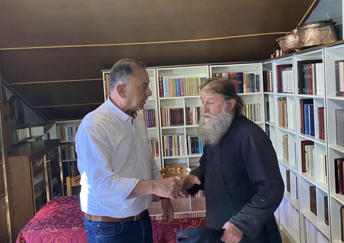 Γεμάτος περηφάνεια, ο παπα Κώστας Τσιγάρας… ξεναγούσε το Χρήστο Κέλλα, στον καλαίσθητο και όμορφα διαμορφωμένο χώρο, με βιβλία και άλλα εκθέματα, στον Ιερό Ναό της Ζωοδόχου Πηγής, στο Αργυροπούλι.
