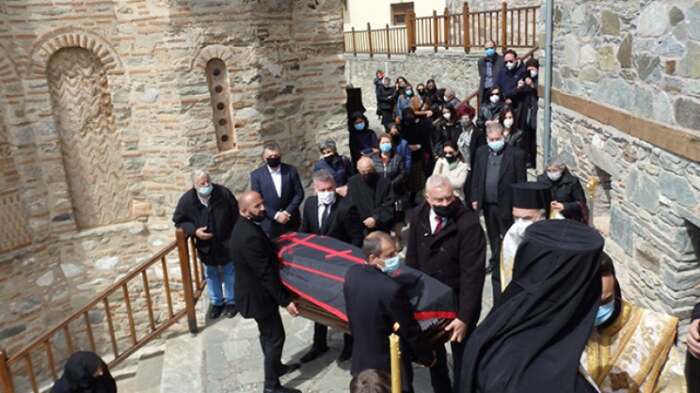 Στην Εξόδιο Ακολουθία που τελέσθηκε στο Καθολικό της Ι. Μονής Παναγίας Ολυμπιώτισσας, σύμφωνα με τα προβλεπόμενα για τήρηση των περιοριστικών μέτρων προστασίας κατά του ιού Covid-19, χοροστάτησε ο σεβασμιότατος Μητροπολίτης Ελασσώνος κ. Χαρίτων και συλλειτούργησαν ο πρωτοσύγκελος της Μητρόπολης – αρχιμανδρίτης π. Βησσαρίων Καραλάσκος, ο ηγούμενος της Ι. Μονής Αγίας Τριάδος Σπαρμού Ολύμπου – αρχιμανδρίτης π. Νικάνωρ Παπανικολάου και ο ηγούμενος της Ι. Μονής Φιλοθέου του Αγίου Όρους – αρχιμανδρίτης π. Νικόδημος.