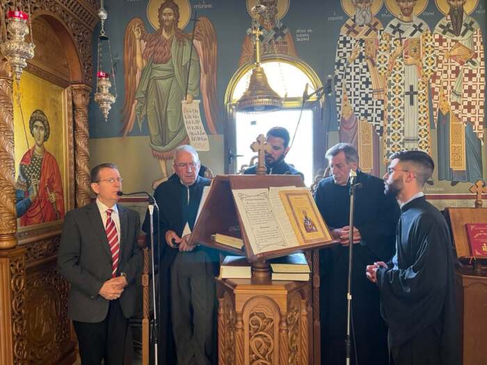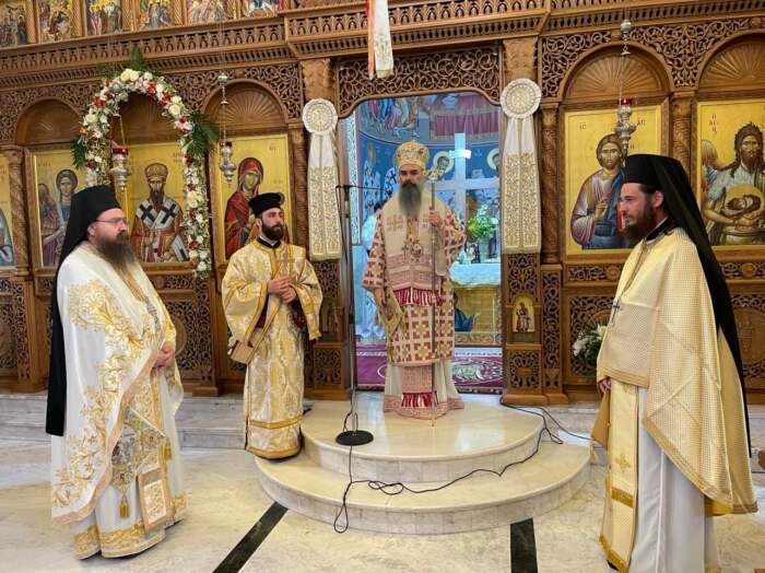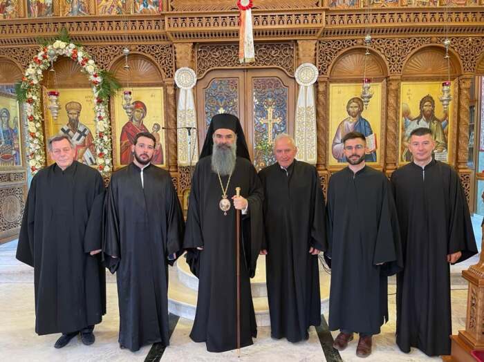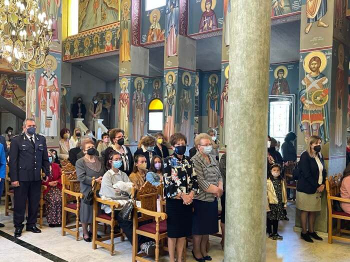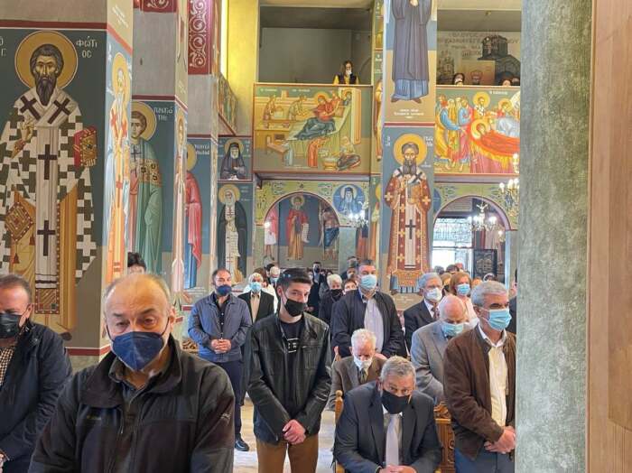 Στην Θεία Λειτουργία της Κυριακής, χοροστάτησε ο σεβασμ. Μητροπολίτης Ελασσώνος κ. Χαρίτων και συλλειτούργησαν ο πρωτοσύγκελος της Ι. Μητρόπολης – αρχιμανδρίτης π. Βησσαρίων Καραλάσκος, ο ηγούμενος της Ι. Μονής Αγίας Τριάδος Σπαρμού Ολύμπου – αρχιμανδρίτης π. Νικάνωρ Παπανικολάου, οι πρωτοπρεσβύτεροι π. Νικόλαος Πνευματικός και π. Ευάγγελος Γκανάτσιος, ο διάκονος π. Σπυρίδων Σταμούλης, ενώ συμπροσευχήθηκε μαζί τους ο αρχιερατικός επίτροπος της Ι. Μητρόπολης – πρωτοπρεσβύτερος π. Δημήτριος Παπαγεωργίου (τελετάρχης προιστάμενος του Ναού). Έψαλε ο “Βυζαντινός χορός φίλων Αγίου Αρσενίου” με χοράρχη τον κ. Νικόλαο Στάμου.