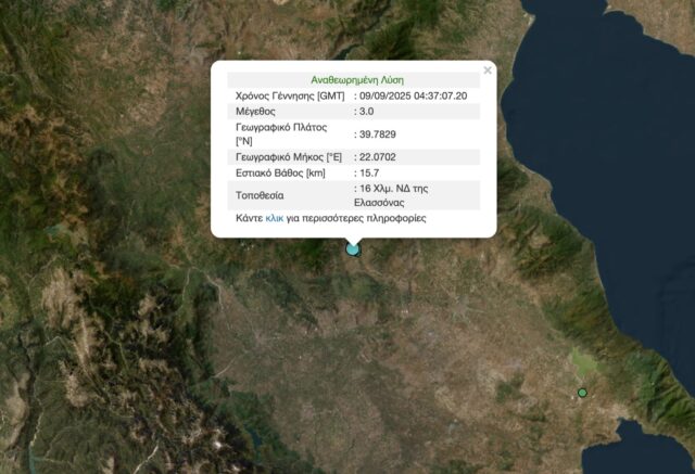 Η Ελασσόνα ξύπνησε με αλλεπάλληλες ασθενείς σεισμικές δονήσεις