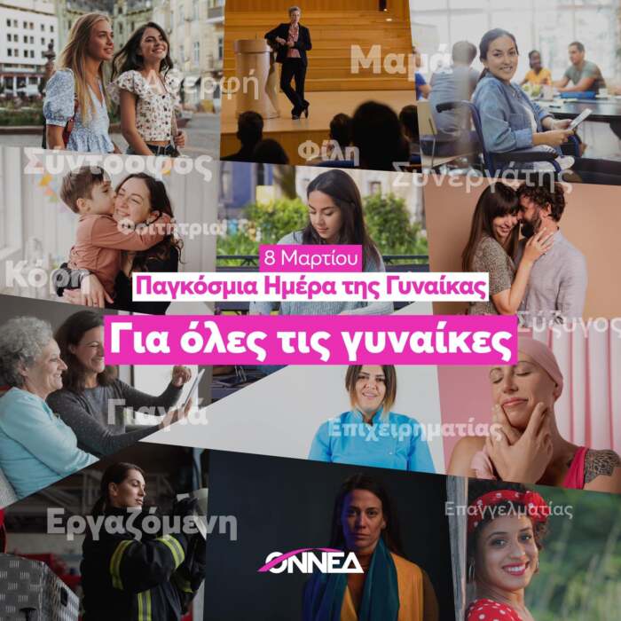 Για όλες τις γυναίκες που συμμετέχουν, αγωνίζονται και αλλάζουν τον κόσμο. Για όλες τις γυναίκες που τολμούν, καινοτομούν και διαμορφώνουν τις εξελίξεις. Είμαστε εδώ καθημερινά με πράξεις και προτάσεις για την αληθινή ισότητα και τις ίσες ευκαιρίες, για μια κοινωνία χωρίς αποκλεισμούς. Για όλες τις γυναίκες.