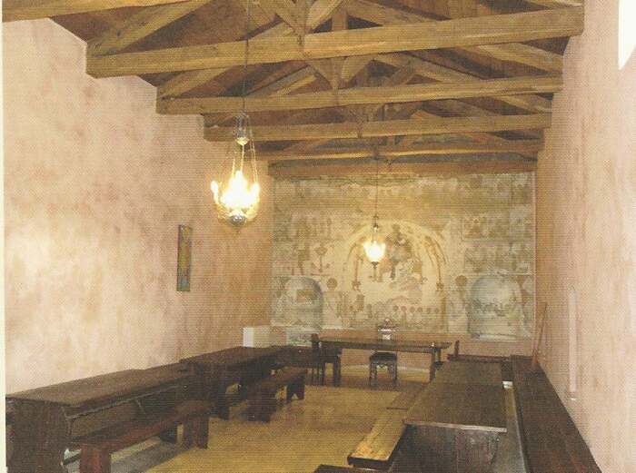 Αναφέρουμε πως η τραπεζαρία, είναι αρχαιότερη της Μονής, ενώ στις κόγχες της τραπεζαρίας διακρίνονται τοιχογραφίες, οι οποίες όμως δεν σώζονται σε καλή κατάσταση. Η κόγχη της τραπεζαρίας είναι όμοια με την κόγχη του ιερού του Καθολικού. Οι ίδιοι άγιοι εικονίζονται, αλλά, αντί να φέρουν τα αρχιερατικά τους άμφια, όπως στο Καθολικό, φορούν μοναχικό μανδύα, γνώρισμα του μοναχικού σχήματος και σύμβολο ασκήσεως.