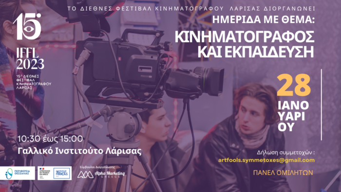 Το 15ο Διεθνές Φεστιβάλ Κινηματογράφου Λάρισας, στο πλαίσιο του προγράμματος για παρουσία με εκδηλώσεις και δράσεις όλο το χρόνο, διοργανώνει το Σάββατο 28 Ιανουαρίου από 10.30 – 15.00 στο Γαλλικό Ινστιτούτο Λάρισας, Ημερίδα με θέμα Κινηματογράφος και Εκπαίδευση.