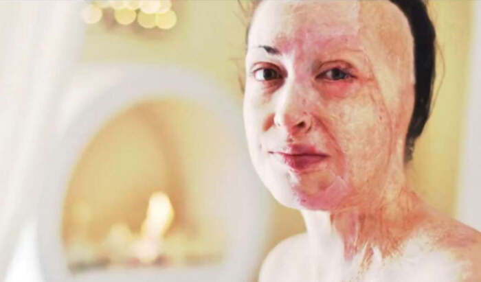«Πρώτη φορά είδα τον εαυτό μου στον καθρέφτη λίγες ημέρες πριν βγω από το νοσοκομείο. Οι γιατροί και οι ψυχολόγοι με πίεζαν πολλές ημέρες πριν να κάνω αυτό το βήμα. Εγώ δεν ήθελα. Φοβόμουν αυτό που θα αντικρίσω. Δεν είχα δει ούτε καν τα χέρια μου. Το απόφευγα. Προσπαθούσα να κερδίσω χρόνο. ‘Ομως έφτασε η ώρα. Ήθελα να έχω δίπλα μου τη γιατρό μου. Θυμάμαι πως στο νοσοκομείο στην τουαλέτα υπήρχε καθρέφτης αλλά ήταν καλυμμένος. Είχα την επιλογή να το κάνω αλλά δεν το έκανα ποτέ. Έφτασε εκείνη η ημέρα, ήρθε η γιατρός μου. Έφερε το μέικαπ και άρχισε να μου το τοποθετεί παντού. Και πρώτη στρώση και δεύτερη στρώση. Μου τοποθέτησε και κάποια γάζες στα δύσκολα σημεία που δεν μπορούσαν να καλυφθούν και μου έδωσε έναν στρογγυλό καθρέπτη. Κοιτάζω τον εαυτό μου για τρία δευτερόλεπτα, κρατάω την αναπνοή μου και λέω »οκ». Είδα τα μάτια μου, τις ουλές, τα χείλη μου. Δεν πίεσα τον εαυτό μου πολύ. Κράτησε για μερικά δευτερόλεπτα».