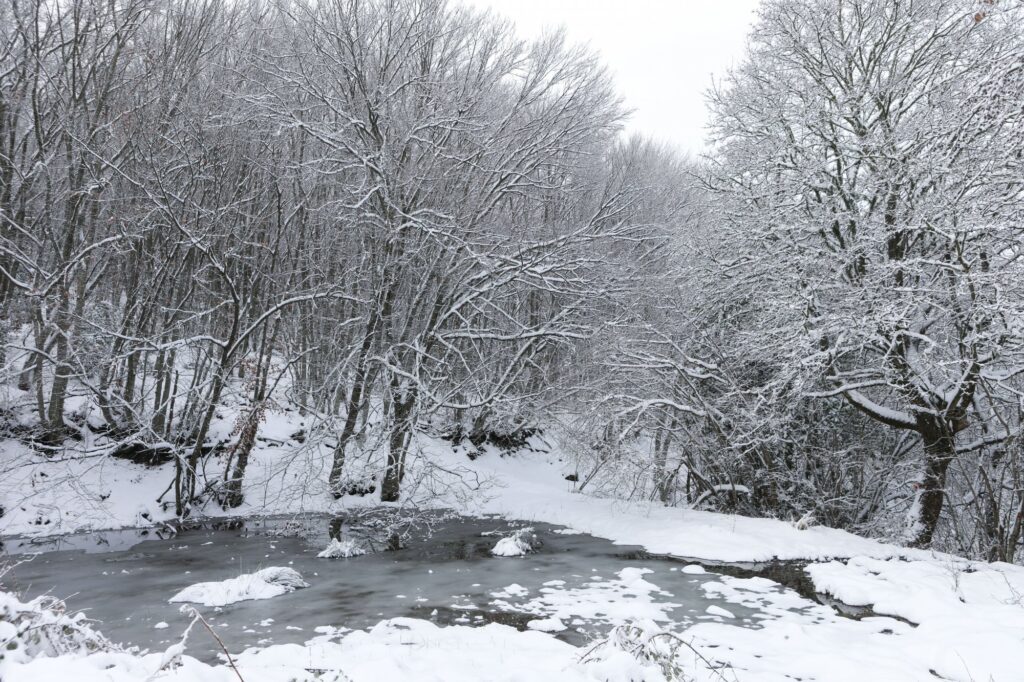 Η λίμνη Μπελέτσι, στην Ιπποκράτειο Πολιτεία, λίγα χιλιόμετρα από το κέντρο της Αθήνας, πάγωσε, ενώ δεν έχει σταματήσει να χιονίζει στην περιοχή.