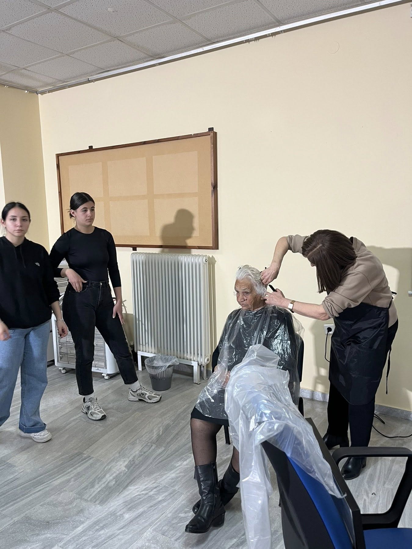 Η ανακοίνωση αναφέρει: Με μεγάλη χαρά επισκεφθήκαμε το ΚΑΠΗ του δήμου Ελασσόνας με τους μαθητές του 1ου ΕΠΑΛ Ελασσόνας, της Γ τάξης του τμήματος Κομμωτικής τέχνης, όπου είχαμε την ευκαιρία να προσφέρουμε υπηρεσίες κουρέματος στις κυρίες του χώρου.