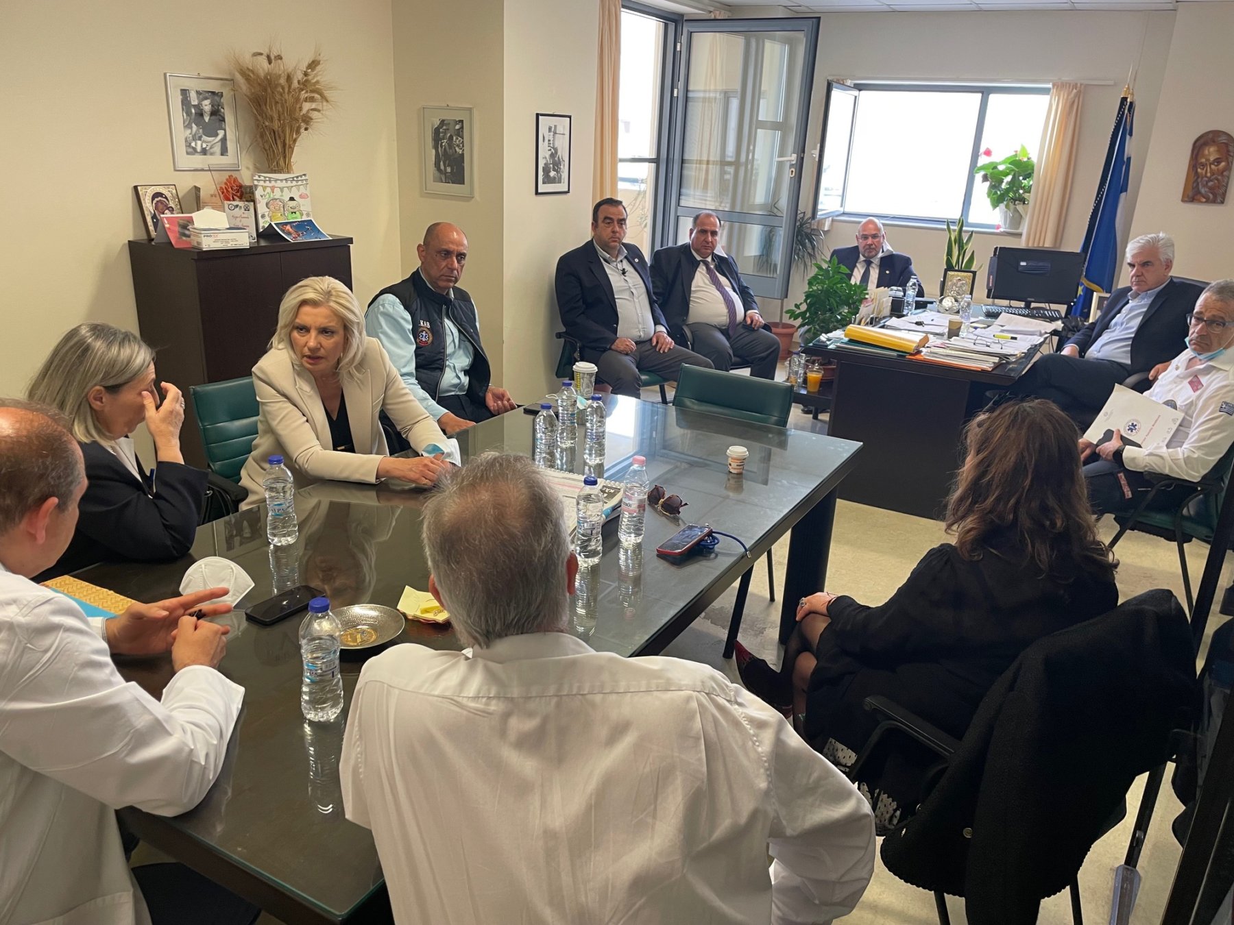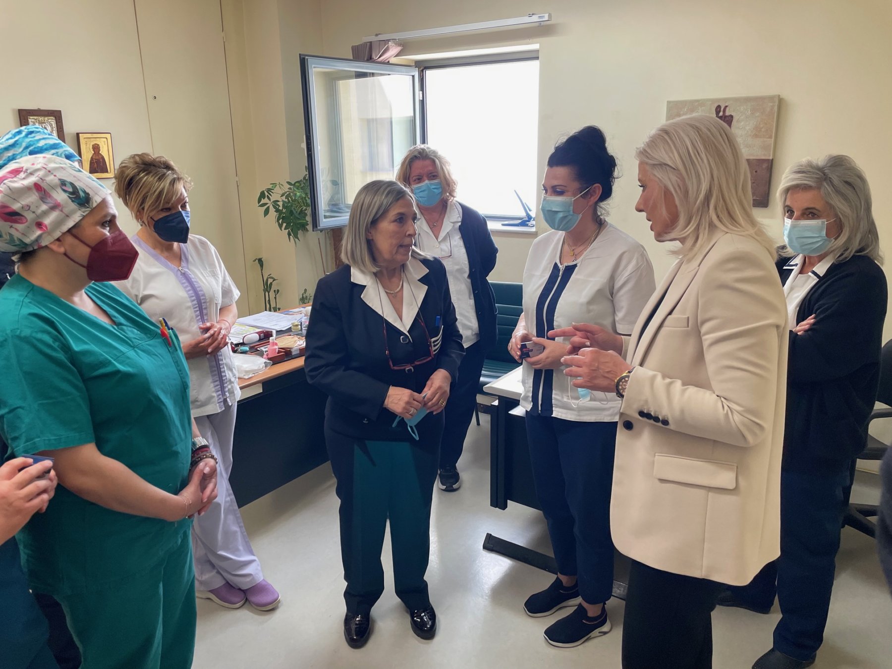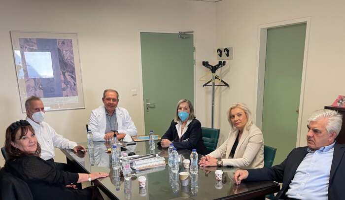 Η Λαρισαία πολιτικός συμμετείχε σε διευρυμένη σύσκεψη που πραγματοποιήθηκε με τον διοικητή του νοσοκομείου, κ.Δημήτρη Κατσικονούρη, τον διευθυντή της Χειρουργικής Κλινικής, καθηγητή Δημήτρη Ζαχαρούλη, τον διευθυντή της Γυναικολογικής και Μαιευτικής Κλινικής, καθηγητή Αλέξανδρο Δαπόντε, τη διευθύνουσα της Νοσηλευτικής Υπηρεσίας, Ντίνα Ζησοπούλου, τον πρόεδρο του ΕΚΑΒ, Νίκο Παπαευσταθίου και τον αντιπρόεδρο Παναγιώτη Κουτρουμπέλη, ενώ επί τάπητος βρέθηκαν ζητήματα που απασχολούν το ιατρικό και νοσηλευτικό προσωπικό του ΠΓΝΛ. Η υποψήφια βουλευτής είχε την ευκαιρία να μιλήσει και με το νοσηλευτικό προσωπικό.