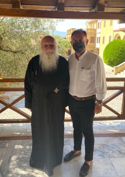Τον Λαρισαίο πολιτικό υποδέχτηκαν και ξενάγησαν στη Μονή η Καθηγουμένη Γερόντισσα Ιακώβη και ο πνευματικός καθοδηγητής της και Καθηγούμενος της Ιεράς Μονής Ξενοφώντος, Αρχιμανδρίτης Αλέξιος. Ο Χρήστος Κέλλας και ο Αγιορείτης Αρχιμανδρίτης είναι παλιοί γνώριμοι από τις επισκέψεις, που πραγματοποιεί σε τακτική βάση ο Λαρισαίος ιατρός στο Άγιο Όρος.