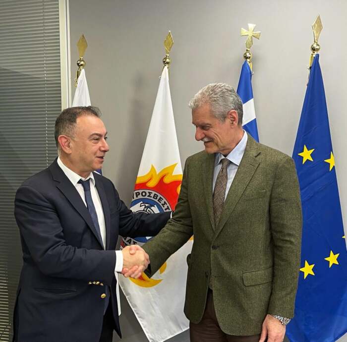 Συνάντηση εργασίας για την ενίσχυση του Πυροσβεστικού Σώματος στον Νομό Λάρισας είχε ο αν. γραμματέας της ΚΟ της ΝΔ, βουλευτής Ν. Λάρισας, Χρήστος Κέλλας, με τον αρμόδιο υφυπουργό, Ευάγγελο Τουρνά, στο υπουργείο Κλιματικής Κρίσης και Πολιτικής Προστασίας.