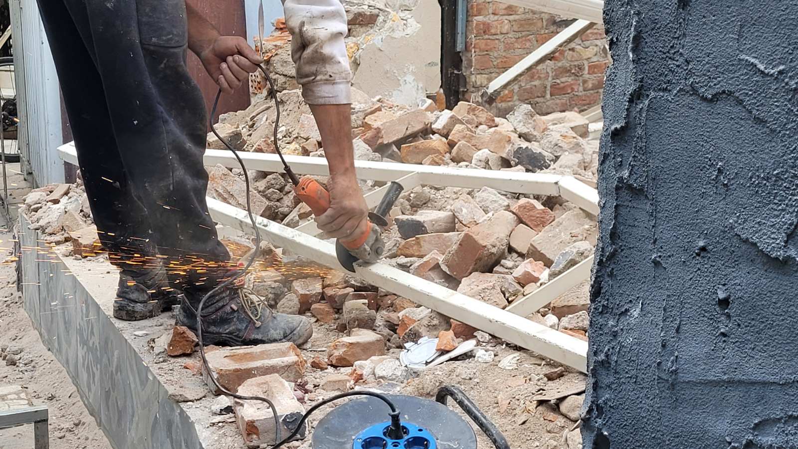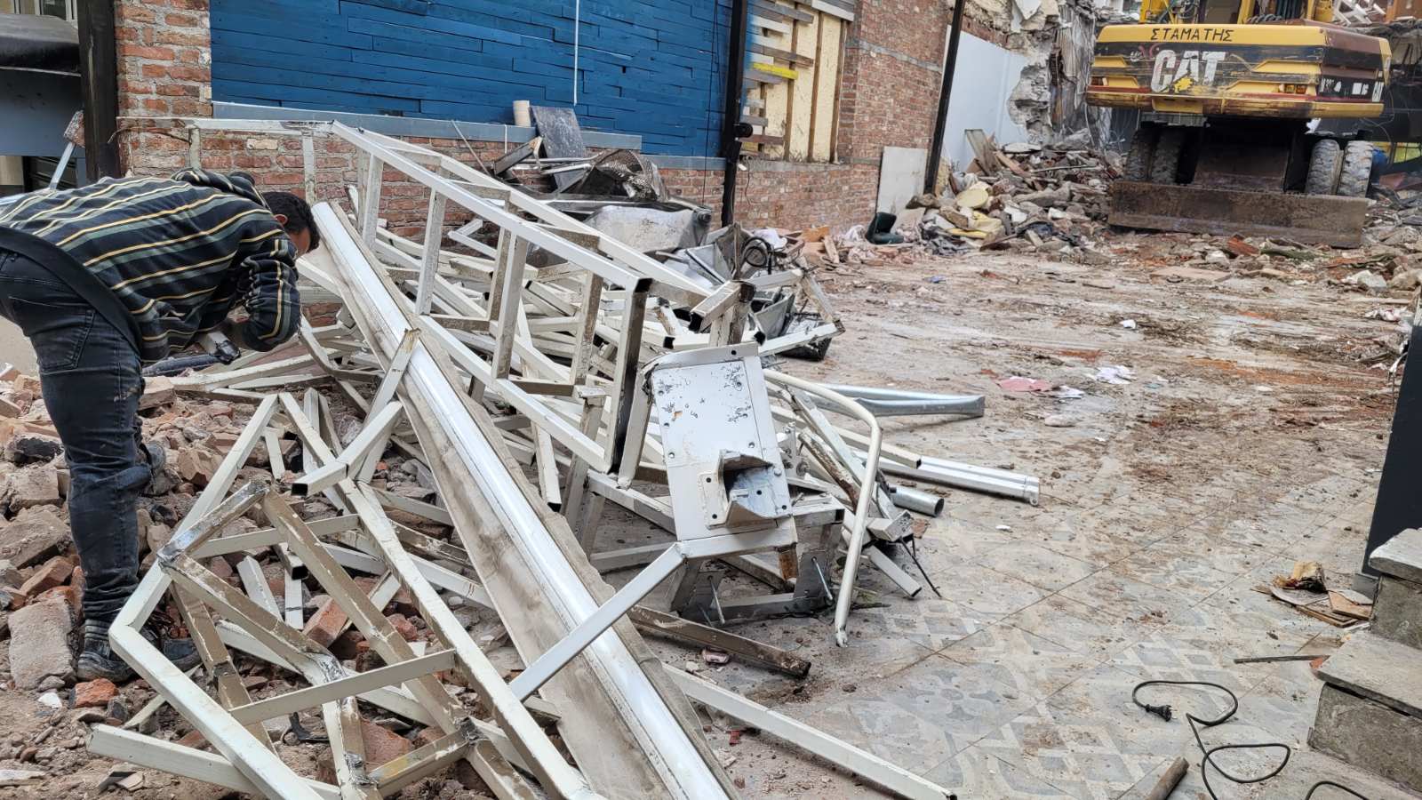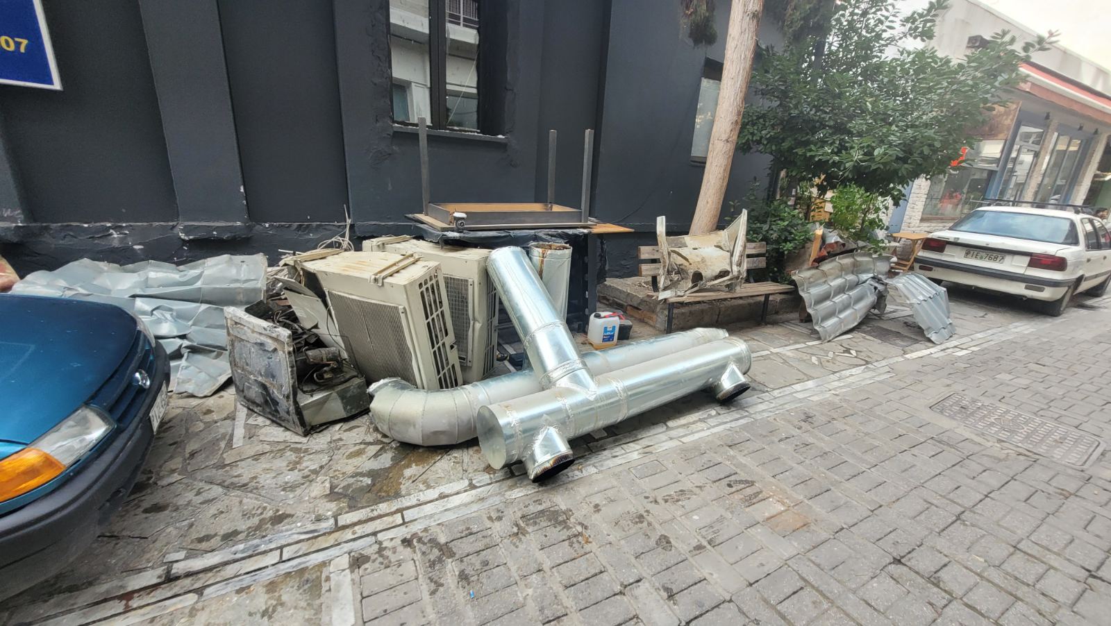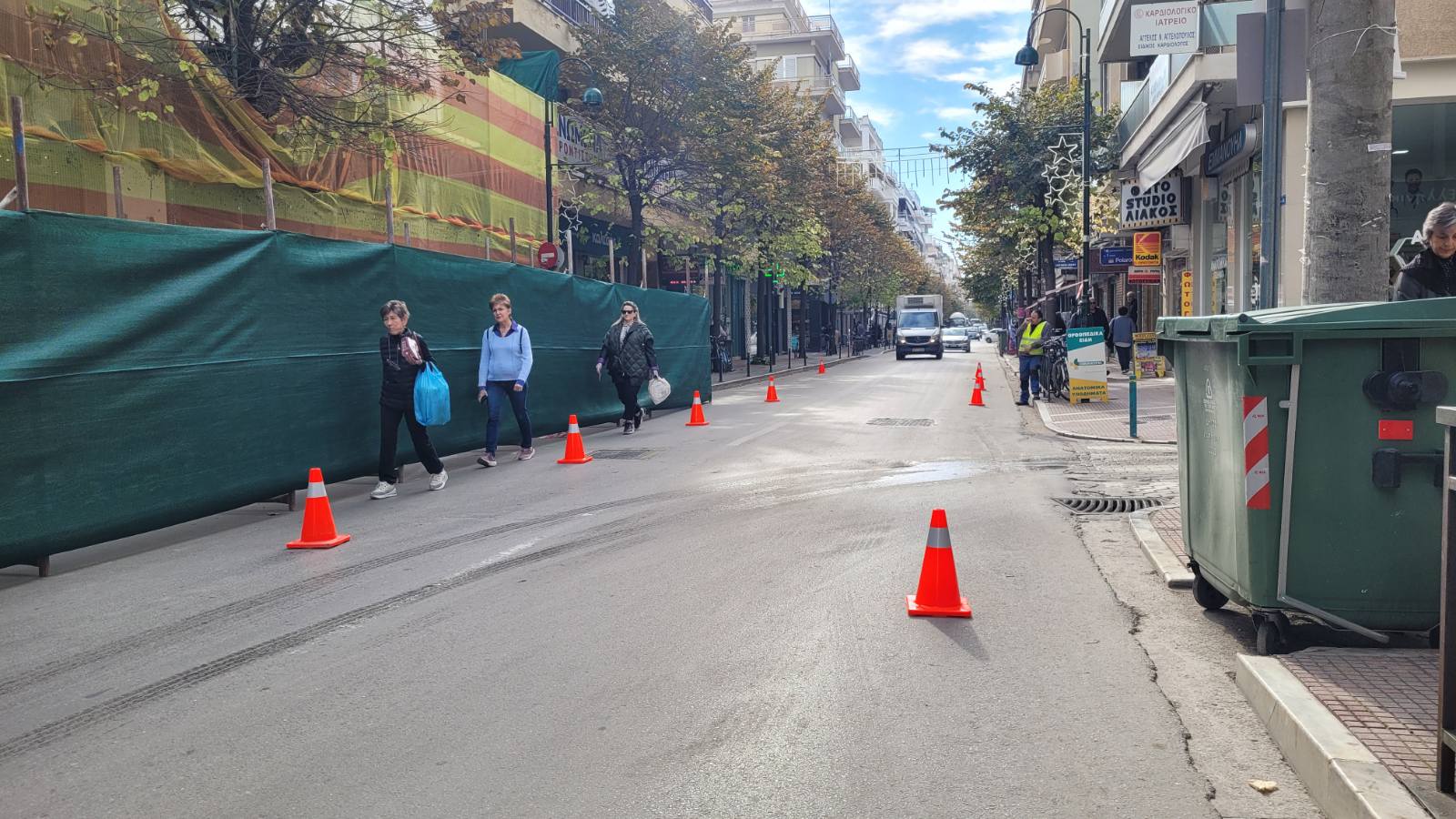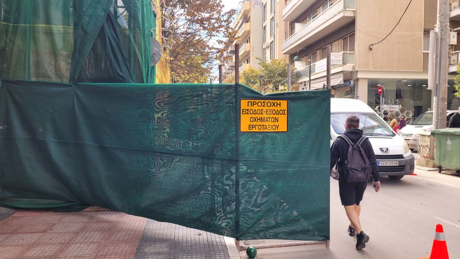 Σήμερα Τετάρτη ξεκίνησαν οι εργασίες της κατεδάφισης από τον πεζόδρομο της Φρίξου, ενώ προστατευτικά πλέγματα έχουν τοποθετηθεί στην Παπαναστασίου.