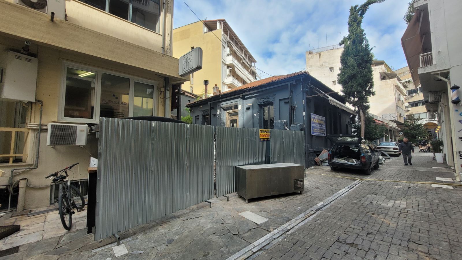Όπως είχε καταγράψει το onlarissa.gr, στη θέση του μαγαζιού θα ανεγερθεί πολυκατοικία με στοά, που θα συνδέει τις παραπάνω οδούς.