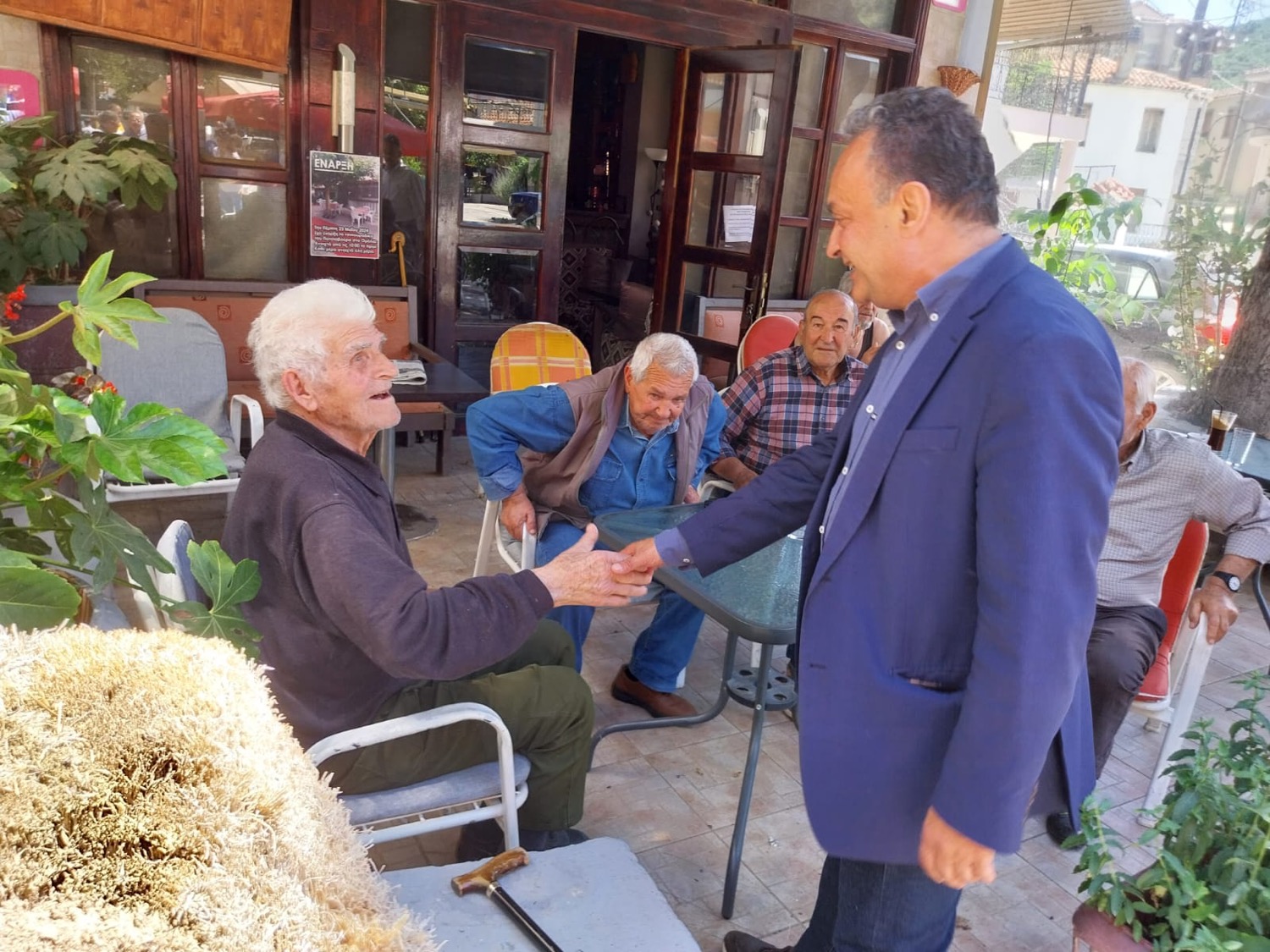 Ακολούθησε επίσκεψη στο εκλογικό περίπτερο της ΝΔ στα Φάρσαλα και κατόπιν συνάντηση με τον δήμαρχο Μάκη Εσκίογλου στο Δημαρχείο και αγροτικούς φορείς.