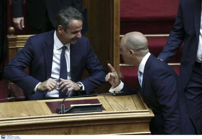 «Δεν βρισκόμαστε εδώ για να επιστρέψουμε στο κακό παρελθόν της χώρας. Είμαστε εδώ για να συζητήσουμε την επιβίωση της πατρίδας μας στο μέλλον», είπε ο Νίκος Δένδιας χτυπώντας και το χέρι του στο έδρανο.