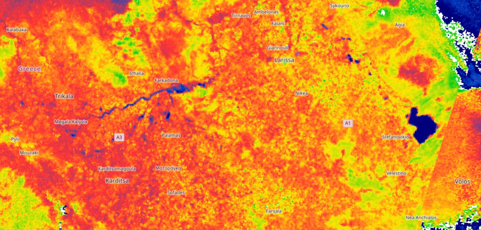 “Για τα ρεμματα τώρα. Η βροχή προχθές το βράδυ ήταν αρκετή αλλά όχι όσο στον Byron. Οι λεκάνες του Ενιπέα και του σοφαδιτη δεν έδωσαν πολύ νερό. Όμως έπεσε βροχή μεσοσταθμικα 100 χιλιοστά στην Δυτική Θεσσαλία σε πολύ μεγάλη έκταση σε λίγες ώρες. Το νερό κατέβηκε προς τον Πηνειό και βλέπετε στον δορυφόρο με μπλε τα νερά. Φαίνονται οι κοίτες και κάποιες πλημμυρικες ζώνες έξω από την Φαρκαδόνα προς το βουνό και αλλού. Τα αναχώματα έχουμε ξαναπεί ότι μετά τον Ντάνιελ έγιναν με ύψος που να προστατεύει τους οικισμούς ενώ προς το βουνό αφήνεται να φτιάξει πλημμυρικες ζώνες γιατί το νερό κάπου πρέπει να πάει. Άρα ούτε ο Πηνειός πλημμύρισε ούτε ζήσαμε νέο Ντάνιελ που δείχνουν στις ειδήσεις. Είναι όλα ψέματα. Η αλήθεια είναι αυτή που βλέπετε. Έτσι σχεδιάστηκε. Να υπάρχουν πλημμυρικες ζώνες να προστατεύουν τους οικισμούς. Όταν με το καλό το υπουργείο φτιάξει την ορεινή υδρονομια και το φράγμα του Ενιπέα τότε θα είμαστε καλά. Κάτω αριστερά με μπλε είναι η Κάρλα . Η λίμνη Πλαστήρα δεν φαίνεται έχει σύννεφα”.