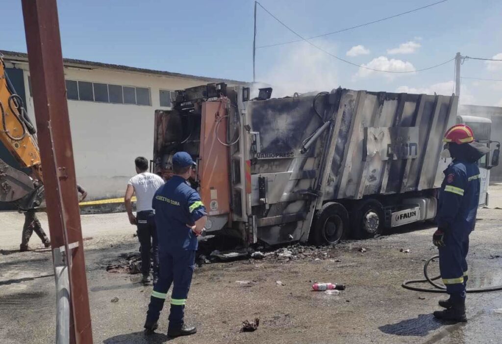 Λάρισα: Παρανάλωμα του πυρός έγινε απορριμματοφόρο που πήρε φωτιά στη Νίκαια – ΦΩΤΟ