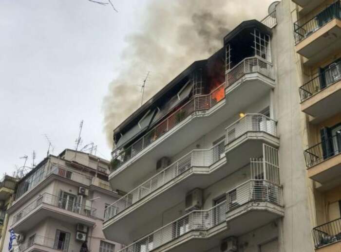 Συγκεκριμένα το διαμέρισμα που τυλίχθηκε στις φλόγες βρίσκεται στον 5ο όροφο πολυκατοικίας στην συμβολή των οδών Ηπείρου και Καραθάνου.