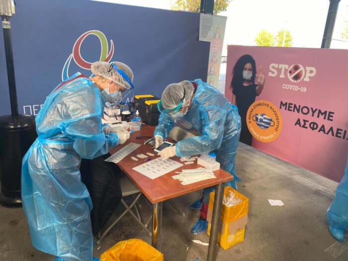 Στο Λιβάδι Ελασσόνας πραγματοποιήθηκε σήμερα μαζική δειγματοληψία με έλεγχο ταχείας αντιγόνου (rapid test) μέσω της δράσης «drive through testing»: