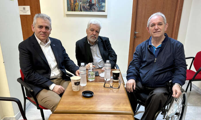 Τα παραπάνω τόνισε ο βουλευτής Λαρίσης της Νέας Δημοκρατίας κ. Μάξιμος Χαρακόπουλος στη συνάντηση που είχε με τον πρόεδρο του Πανθεσσαλικού Συλλόγου Αναπήρων Πολιτών κ. Αθανάσιο Πατσιούρα και τον πρόεδρο της Περιφερειακής Ομοσπονδίας Ατόμων με Αναπηρία (Π.ΟΜ.Α.μεΑ) Θεσσαλίας κ. Στέφανο Πάϊκο.