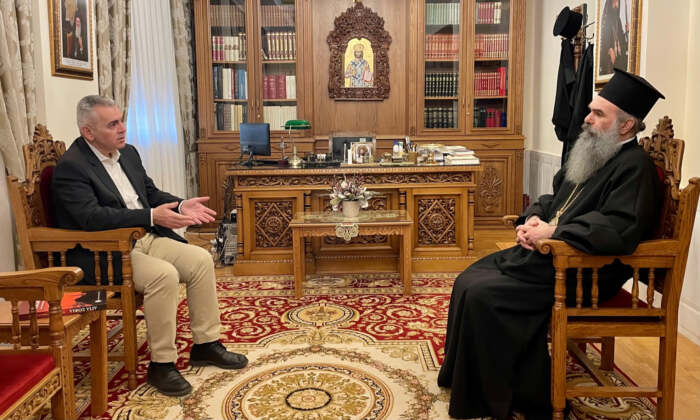 Ο Θεσσαλός πολιτικός επισκέφθηκε την έδρα της μητρόπολης, αφού προηγουμένως εκκλησιάστηκε στον κοιμητηριακό ναό της Αναστάσης του Λαζάρου, και ενημέρωσε τον μητροπολίτη για τις πρόσφατες δράσεις του διεθνούς θεσμού που ηγείται. Συγκεκριμένα, αναφέρθηκε στην κρίσιμη συνεδρίαση της Διεθνούς Γραμματείας της ΔΣΟ, που έλαβε χώρα στο Μιλάνο, αλλά και στις ιδιαίτερα εποικοδομητικές επαφές με εκπροσώπους της καθολικής εκκλησίας και του ιταλικού κράτους, που εκπροσωπήθηκε από τον υφυπουργό παρά τω πρωθυπουργώ κ. Μπρούνο Ταμπάτσι.