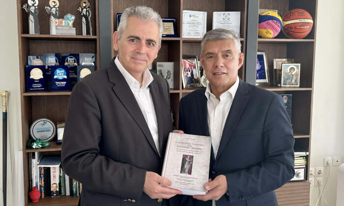 Στο τέλος της συνάντησης των δύο ανδρών ο Κώστας Αγοραστός πρόσφερε στον Μάξιμο Χαρακόπουλο εκδόσεις της Περιφέρειας Θεσσαλίας για τα Δημοτικά Τραγούδια των Βλάχων» και την Μικρασιατική Καταστροφή.