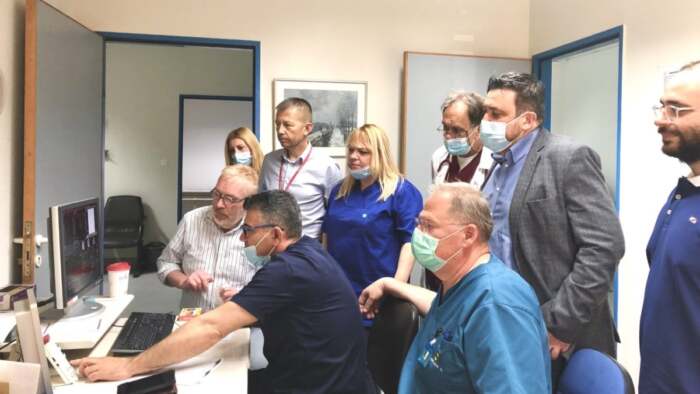 Υπό την παρουσία του Διευθυντή του Ακτινολογικού Τμήματος κ. Ευάγγελου Αλεξίου, του κ. Κων. Μιχαηλίδη Ακτινολόγου καρδιαγγειακής απεικόνισης και υπ. διδάκτορος του Παν. Θεσσαλίας, της ομάδας των εξειδικευμένων τεχνολόγων του τμήματος κ. Ε. Νούλα, Α. Λυτροκάπη, Αικ. Μπουλάκη και της Ακτινολόγου του ΠΠΓΝΛ κας Β. Αργυρούλη, πραγματοποιήθηκαν εξειδικευμένες εξετάσεις Μαγνητικής Τομογραφίας Καρδιάς για την διερεύνηση περιστατικών μυοκαρδιοπάθειας αλλά και μυοκαρδίτιδας από Covid ενώ διενεργήθηκαν και εξετάσεις stress MRI μετά από φαρμακευτική φόρτιση με την συνεργασία των Καρδιολόγων του ΓΝ Λάρισας κ. Κ. Ντούλα και Σ. Κιόκα.