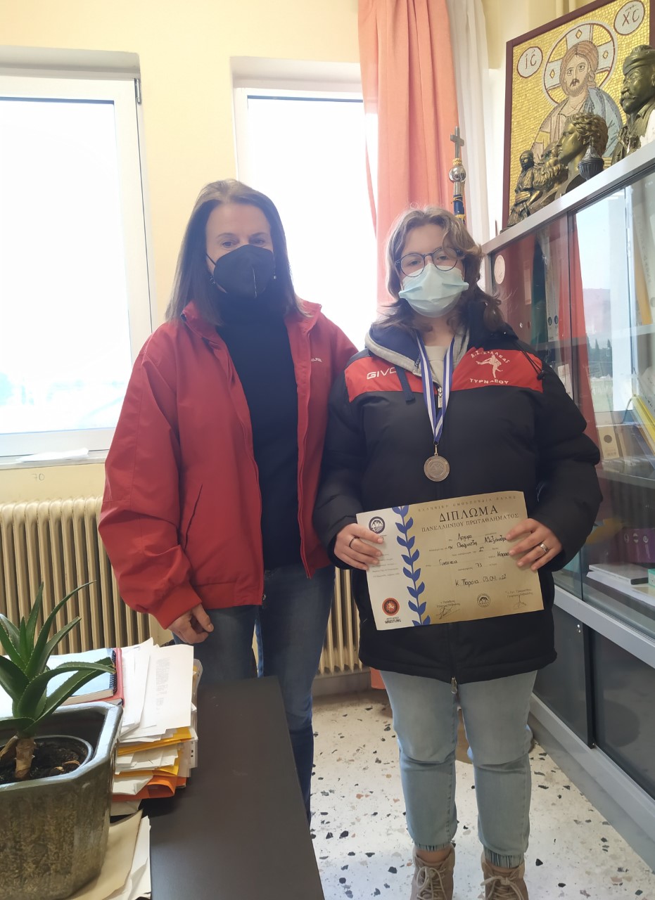 Ο Σύλλογος Διδασκόντων και η Διεύθυνση του 1ου ΕΠΑΛ Τυρνάβου συγχαίρουν την μαθήτρια της Α’ Λυκείου Βογιατζή Αλεξάνδρα του Απόστολου, για την επιτυχία της στο Πανελλήνιο Πρωτάθλημα Πάλης που διεξήχθη την Κυριακή 3 Απριλίου στα Κάτω Πορόια Σερρών.