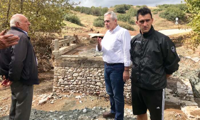 Ο Θεσσαλός πολιτικός, που από την πρώτη στιγμή επισήμανε στο κυβερνητικό κλιμάκιο την ανάγκη για fast trak διαδικασίες, ενημερώθηκε από τους προέδρους του Σταυρού κ. Μιχάλη Στάικο, του Ευύδριου κ. Νίκο Γούσιο, του Βασιλί κ. Γιώργο Μπόγκα, της Υπέρειας κ. Χαράλαμπο Σκαντζούρη, και του Πολυνερίου κ. Μιχάλη Ντάφο για το μέγεθος των προβλημάτων που προκλήθηκαν σε κατοικίες και υποδομές. Ακολούθως, συνοδευόμενος από τον πρόεδρο του Δίλοφου κ. Αποστόλη Ρεντινόπουλο επισκέφθηκε την κατεστραμμένη γέφυρα που συνδέει το χωριό με το Αχίλλειο και τα Φάρσαλα, ενώ με τον πρόεδρο του Ναρθακίου κ. Αθανάσιο Λελετζή μετέβη στο Καστράκι όπου καταστράφηκε η γέφυρα που το ενώνει με τα Δένδρα.