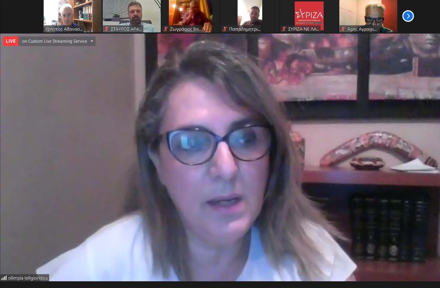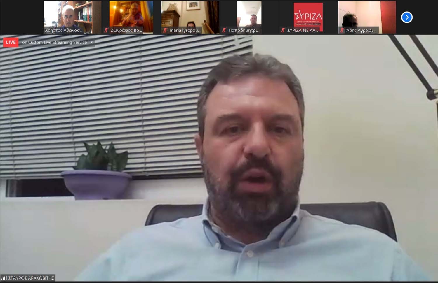 Να σημειωθεί ότι την τηλε-εκδήλωση συντόνισε ο δημοσιογράφος, μέλος της Γραμματείας Αγροτικού Τμήματος της Ν.Ε ΣΥΡΙΖΑ-ΠΣ Λάρισας Χρήστος Αθανασιάδης.