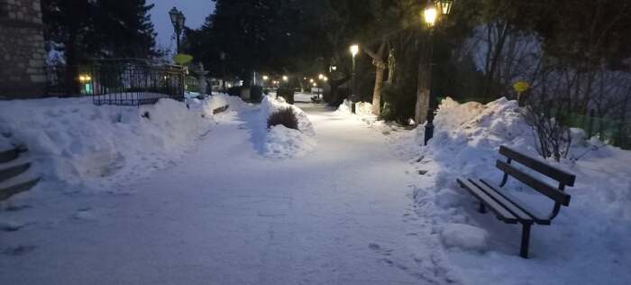 Στα 1200 μέτρα το ορεινό Λιβάδι ξύπνισε με έναν βαθμό Κλεσίου και ελαφριά χιονόπτωση.