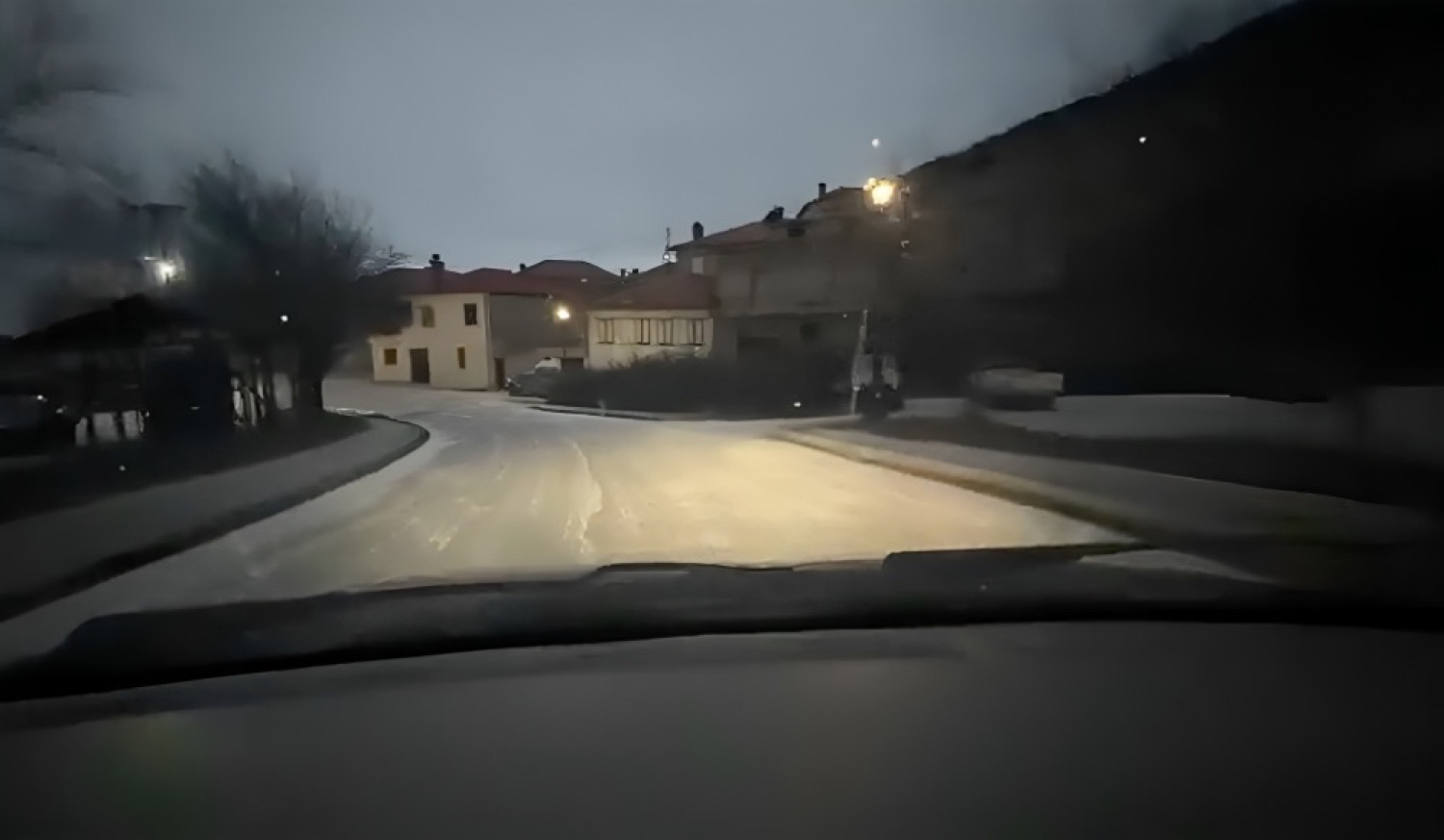 Πολύ ήπια χιονόπτωση όμως πολύ νωρίς το πρωί είχε και το κοντινό στην πόλη της Λάρισας χωριό, το Κουτσόχερο του δήμου Λαρισαίων.