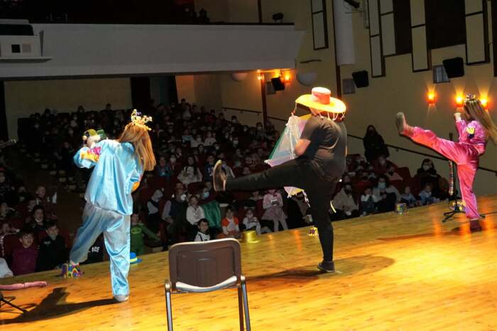 Οι μικροί θεατές φόρεσαν τις αποκριάτικες στολές τους και διασκέδασαν με τις περιπέτειες του Βασιλιά Καρνάβαλου, των άτακτων βοηθών του και του κακού Μάγου.