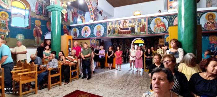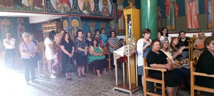Μετά το πέρας του εσπερινού προσφέρθηκαν γλυκά πίτες καφέ κρύο νερό σε όλους μας στον όμορφο αύλειο χώρο του Ναού..